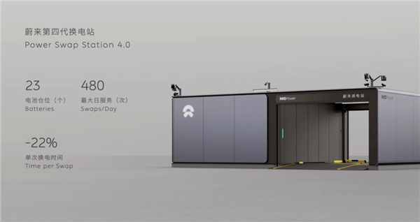 本次发布的第四代换电站采用了站顶光伏发电系统,拥有60平米的电池板和23个电池仓。相较于第三代换电站,其单日最大换电能力提升至480次,并且换电时间缩短22%。换电时间的大幅缩短为用户带来了更便捷的使用体验。