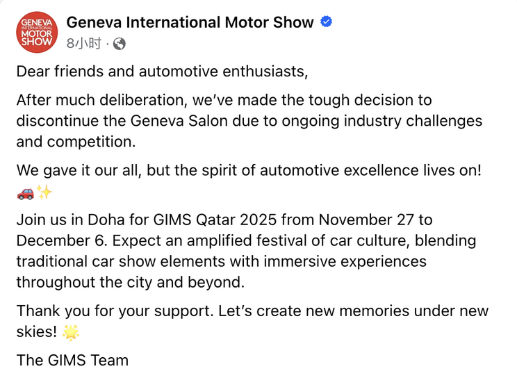 日内瓦车展一直是汽车行业的重要展会之一,然而最近海外媒体报道称,由于“持续的行业竞争压力”,原定于2025年2月17日开幕的日内瓦车展将正式取消。这是该车展自1914年开始举办以来首次未能如期举行。