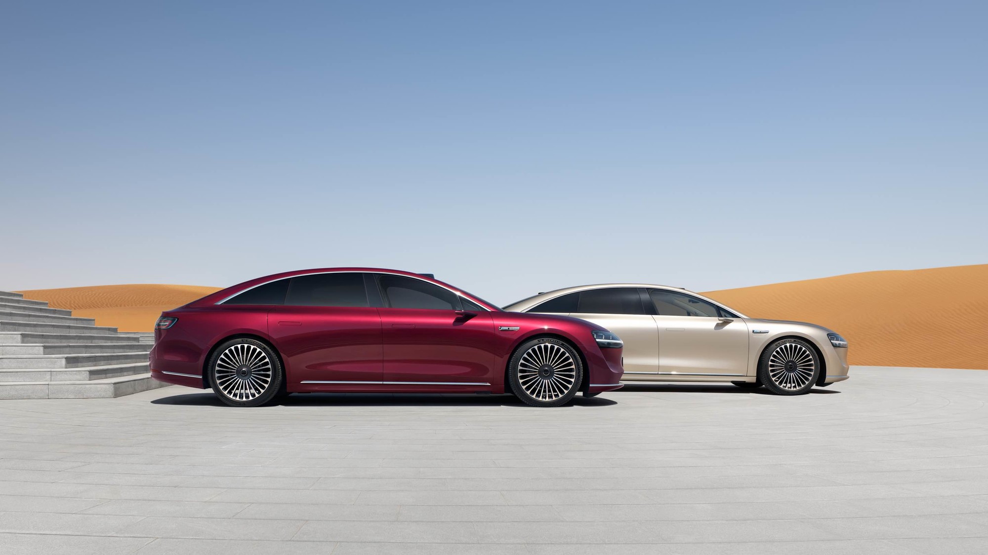 享界S9大而不凡,华而不浮,拥有领先全球量产行政豪华轿车的极低风阻。整车以光塑形,以体造型,车身轮廓勾勒出极佳气流贴合曲线,标志性前进气帘设计,迎风入怀。新车还采用隐藏水切设计,结合流媒体外后视镜、纯平侧窗、豪华星辉锻铣轮毂等配置元素,车身侧面呈现浑然一体的光影立面,带来极致科技、极致简约的流体质感,最大化降低整车风阻系数、有效地降低行驶风噪,带来更低能耗、更长续航和更静谧的驾乘体验。