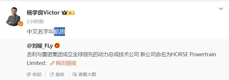 吉利与雷诺集团共同成立了一家名为皓思的全球领先的动力总成技术公司。该公司于2024年5月31日正式成立,由吉利和雷诺各持有50%股份。皓思将采用先进的技术和设计,开发、生产和销售行业领先的混合动力及燃油动力总成部件和系统,包括发动机、变速箱、混合动力系统和电池等。
