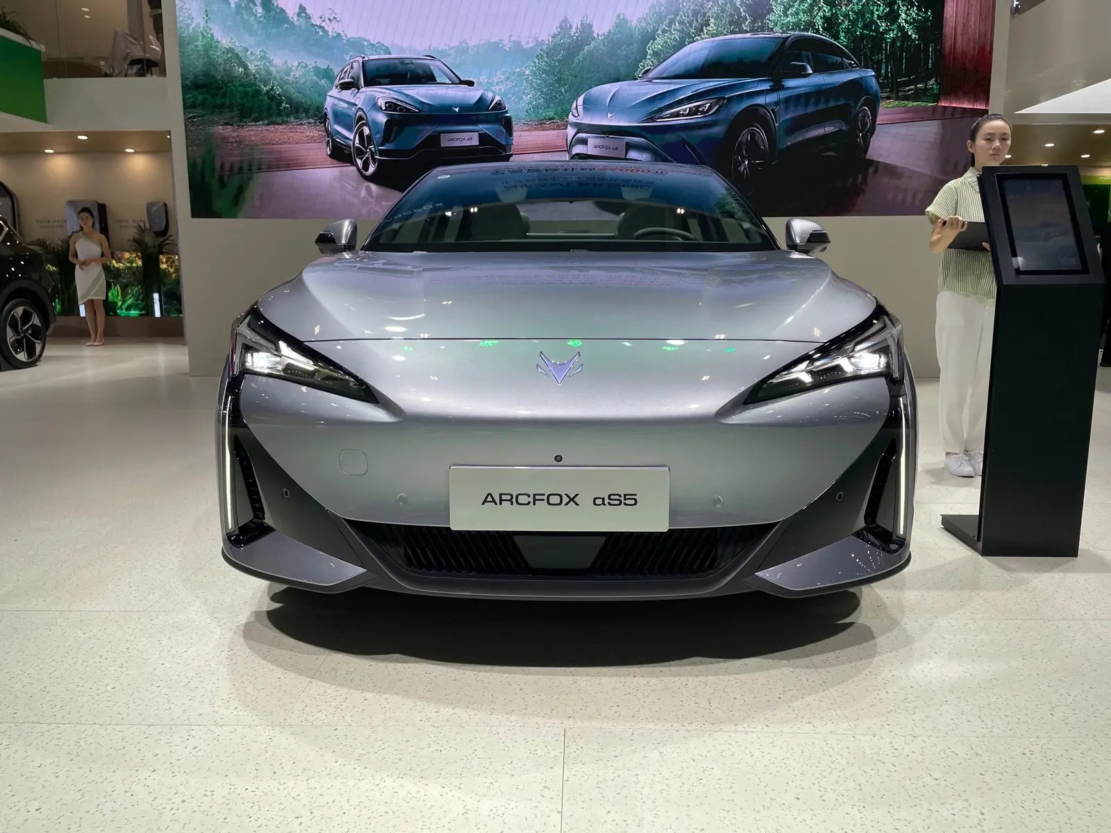 在2024年的粤港澳车展上,极狐阿尔法S5车型实车首次亮相。这款新车此前已正式开启预售,并提供了限时权益价17.48万元起的优惠活动。外观方面,新车前脸采用尖锐的车鼻设计,大灯组左右两侧引出扁平犀利的日行灯光源,展现出科技感十足的形象。前保险杠部分为倒梯形下格栅,下格栅两侧黑色区引出纵向弯折泪眼式日行灯,进一步增强识别度。