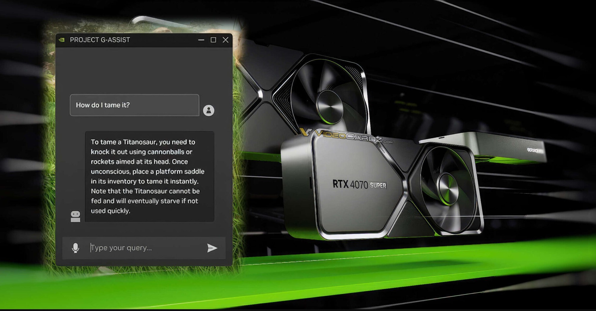 在展示中,G-Assist被用作游戏指南,在帮助玩家找到最好的武器和战术来通关游戏或者引导新手玩家定位制作材料时发挥了重要作用。此外,它还可以检查游戏设置并建议优化以充分利用可用硬件。