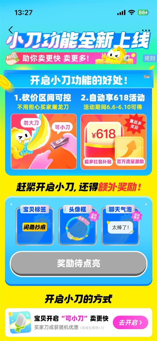 - 此外,“全民出刀”玩法也是闲鱼为了进一步提高平台活跃度而采取的一种手段。