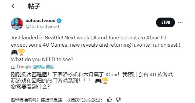 据了解,Xbox即将在6月11日凌晨1点举办发布会。舅舅Colt近日在社交媒体上发布消息,表示这次发布会将有整整40款游戏亮相,其中包括备受期待的新作和回归系列。