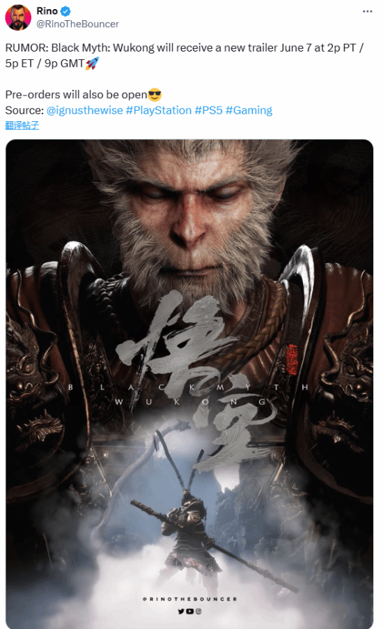 此前,《黑神话:悟空》已公布了售价等重要信息,并且游戏主美杨奇也表示,目前预售还未开启。今天,博主Rino发布了一条消息,称《黑神话:悟空》将于6月7日(或6月8日)的太平洋时间下午2点发布新的预告片,并且预购也将同时开启。