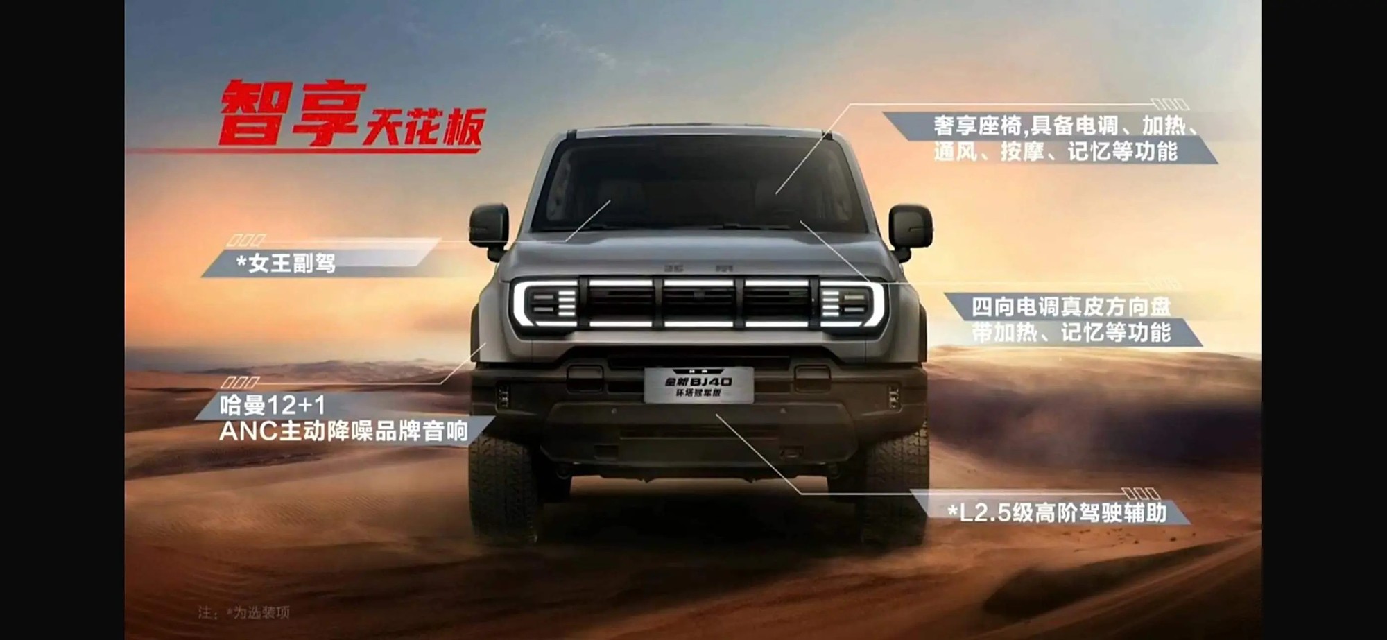 北京汽车全新BJ40环塔冠军版车型近日在网上发布,该车是基于BJ40刀锋英雄版精心打造的,旨在纪念车队在环塔拉力赛T2组别中首次参赛即夺冠的历史时刻。