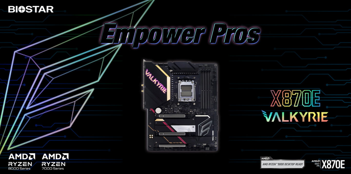 映泰最新发布旗舰级主板 X870E VALKYRIE,支持AMD锐龙9000/8000/7000系列桌面处理器。该主板搭载四根内存插槽和四根M.2固态硬盘插槽,具有强大的扩展能力。