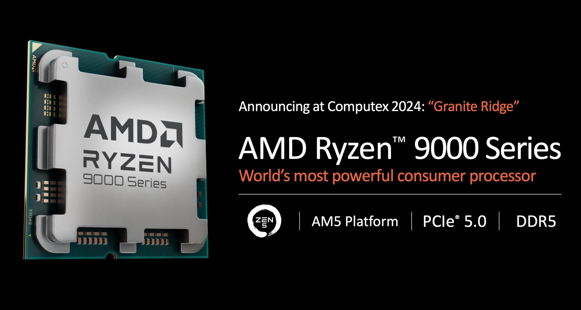 IT之家 6 月 3 日消息,在今日的 2024 台北电脑展演讲中,AMD 锐龙 9000 系列桌面处理器(Granite Ridge)官宣,首搭 Zen5 架构,第一批产品将于今年 7 月推出。