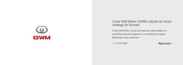 针对当前严峻的欧洲电动汽车市场形势和未来诸多不确定性,长城汽车集团认为有必要调整其未来的欧洲战略。然而,他们强调将与现有经销商合作伙伴保持合作,在欧洲继续开展销售和服务业务,并为客户提供具有卓越价值和体验的产品。