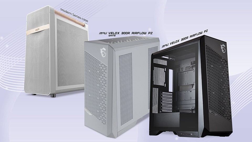 微星在2024年台北国际电脑展上推出了新款MPG VELOX 300R AIRFLOW PZ和Modern系列机箱产品。MPG VELOX刀锋300R AIRFLOW PZ是一款注重散热设计的中塔机箱,提供黑白双色选择,前部内置了两颗160mm ARGB风扇,尾部也配备了120mm风扇。该机箱支持最长390mm长度的显卡竖装,并且可以安装三个360mm AIO水冷散热器。