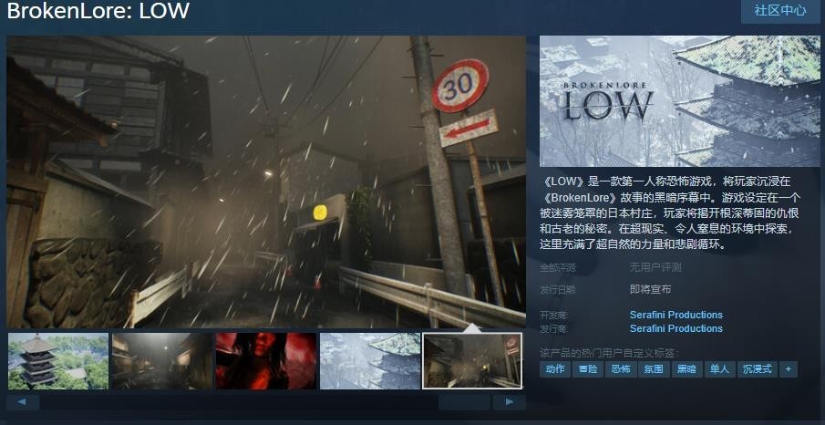 《LOW》是一款第一人称恐怖游戏,将玩家沉浸在《BrokenLore》故事的黑暗序幕中。游戏设定在一个被迷雾笼罩的日本村庄,玩家将揭开根深蒂固的仇恨和古老的秘密。在超现实、令人窒息的环境中探索,这里充满了超自然的力量和悲剧循环。