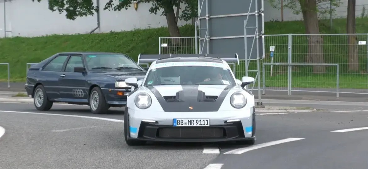 新款保时捷 911 GT2 RS的测试车近日在纽北赛道被曝光。从外观和车身侧面的拉花贴纸来看,这台测试车与911 GT3 RS几乎完全相同。然而,根据排气声浪判断,这台测试车的声音更像是涡轮增压发动机发出的。