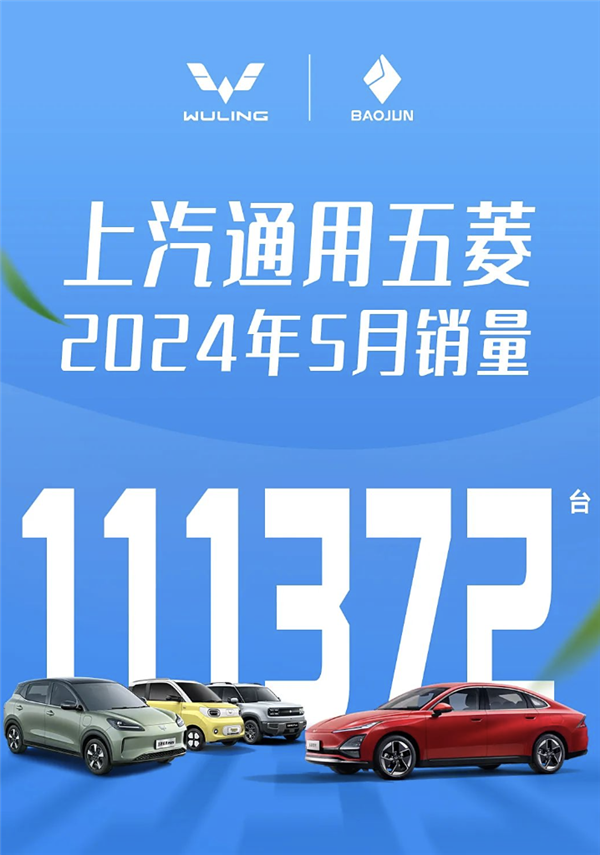 上汽通用五菱5月总销量达111,372台,同比增长32%。其中,五菱乘用车销售44,611台,宝骏汽车销售3,076台。值得注意的是,海外销售量达到19,363台。
