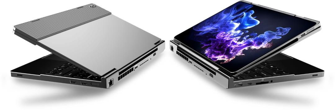 此外,GPD DUO还板载了16GB/32GB/64GB LPDDR5x 7500 MT/s内存,并提供了一个M.2插槽和一个M.2 2280固态硬盘插槽。采用“双13.3英寸极光AM-OLED全面屏”,分辨率为2880×1800,支持60Hz刷新率、10点触控以及MPP协议的4096级压感。这块屏幕峰值亮度达到500尼特,支持原生10bit色深,覆盖100%Adobe RGB和100%DCI-P3色域,并经过出厂校色以确保ΔE小于1。