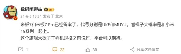 据最新爆料,小米平板7/7 Pro已经完成了备案,并将在小米15系列一起发布。据悉,小米平板7和小米平板7 Pro将分别搭载高通骁龙8 Gen 3和骁龙8 Gen 2芯片。这两款新机的整体性能相比前代产品有所提升,而骁龙870处理器则将会退出历史舞台。