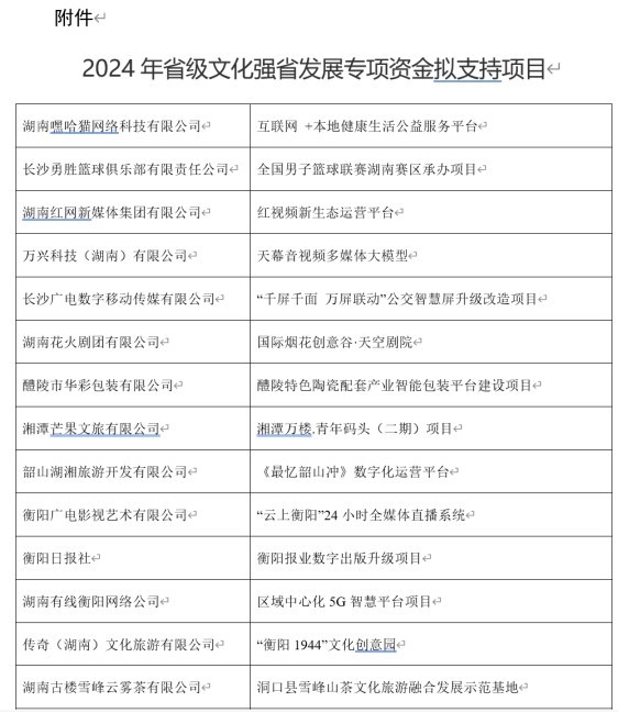 2024年湖南省级文化强省发展专项资金拟入选项目部分截图