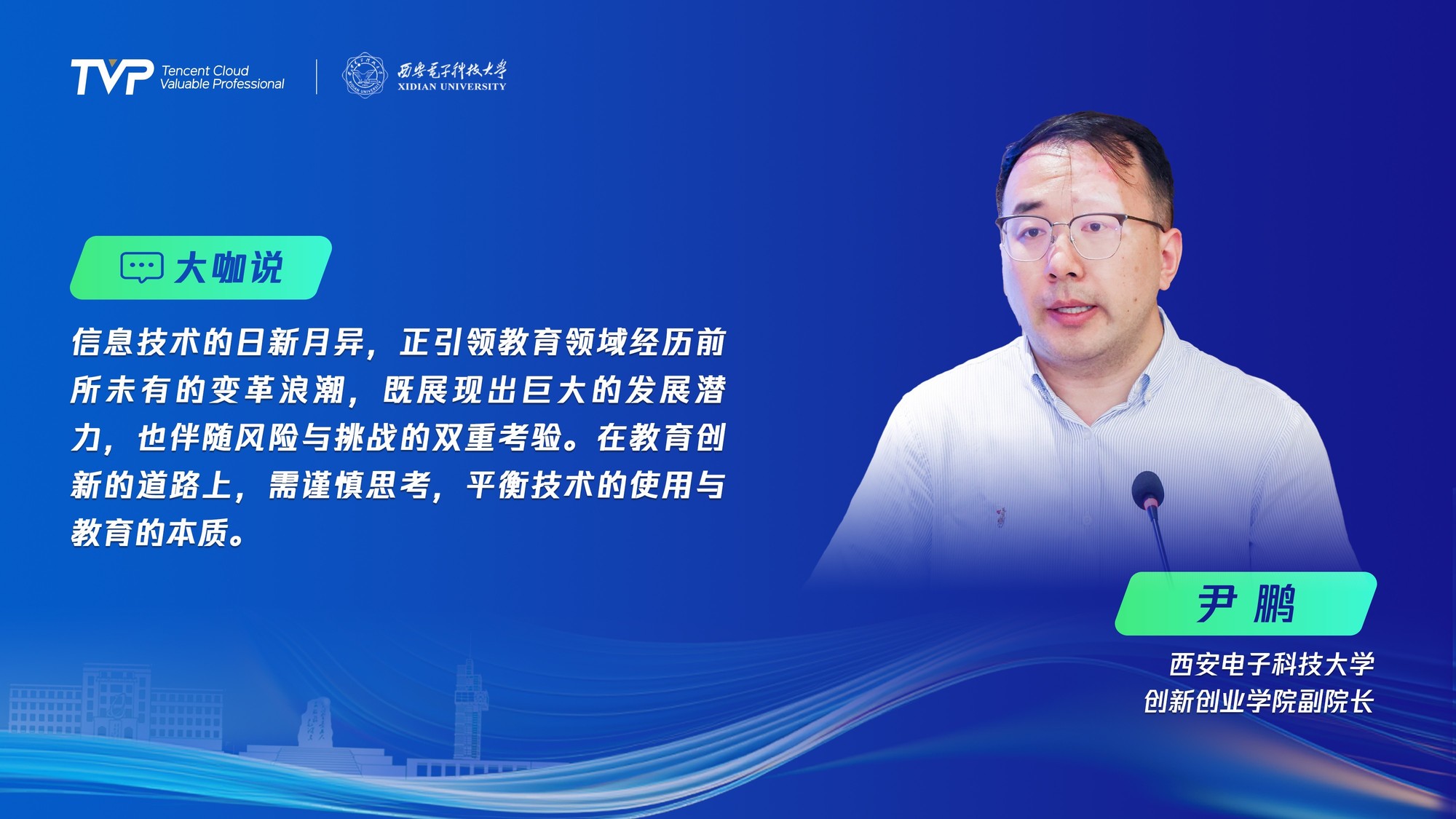 在开场致辞中,西安电子科技大学创新创业学院副院长 尹鹏表示,随着信息技术的飞速发展,数智教育已成为教育领域的关键方向,它不仅改变教育的形态,更深刻影响教育的内涵和外延。伴随人工智能、大数据、云计算等技术的进步,教育领域正经历前所未有的变革。他指出技术双刃剑特性,如数据隐私、信息过载和对传统教育模式的冲击,因此需谨慎平衡技术创新与教育本质。