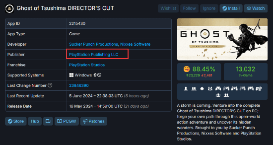 据Steam商店页面显示,PlayStation PC LLC的公司名称已从"PlayStation PC LLC"改为"PlayStation Publishing LLC"。这一改变尚无明确解释。