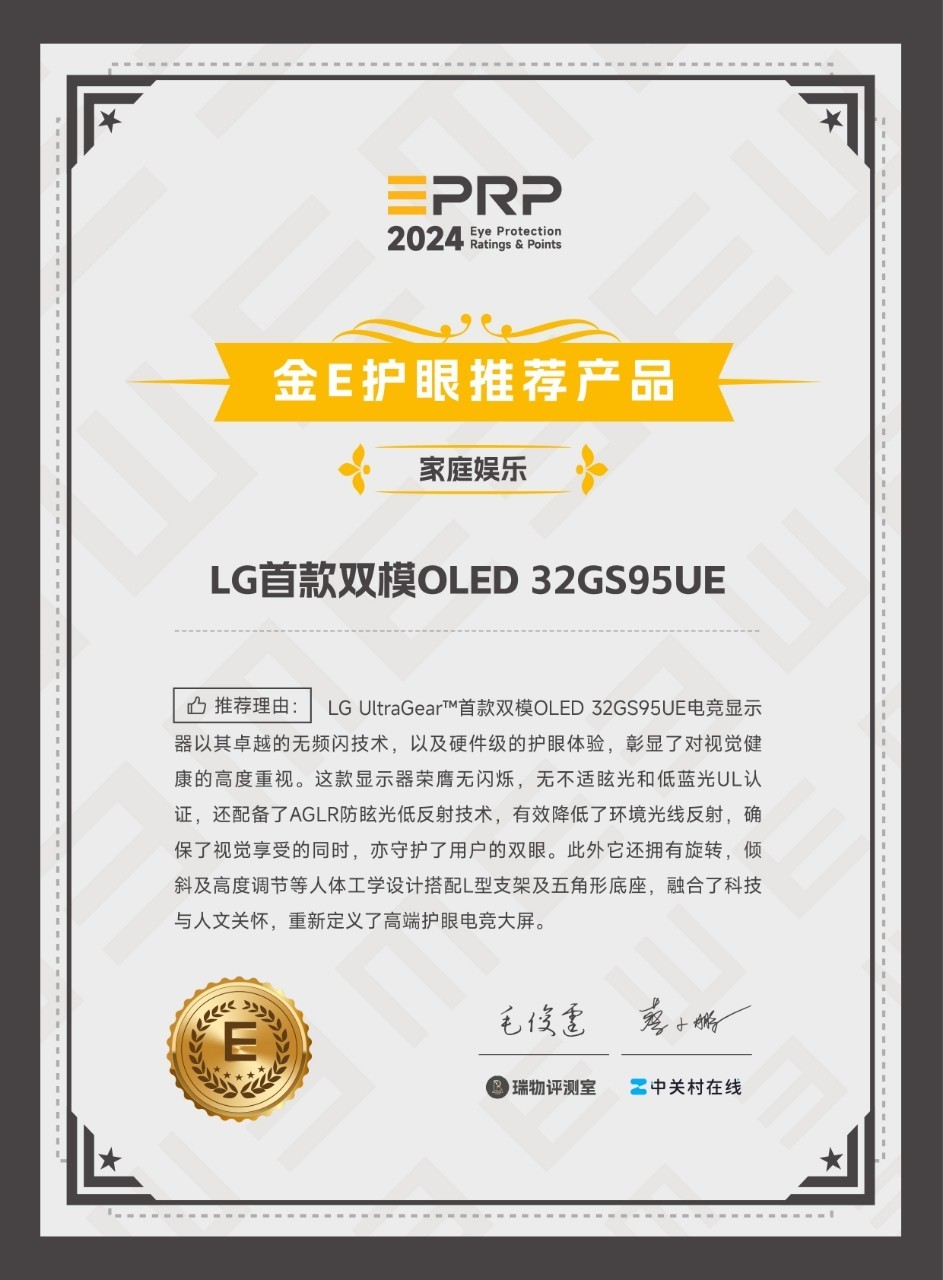 2024金E护眼-家庭娱乐护眼推荐产品:LG首款双模OLED 32GS95UE显示器