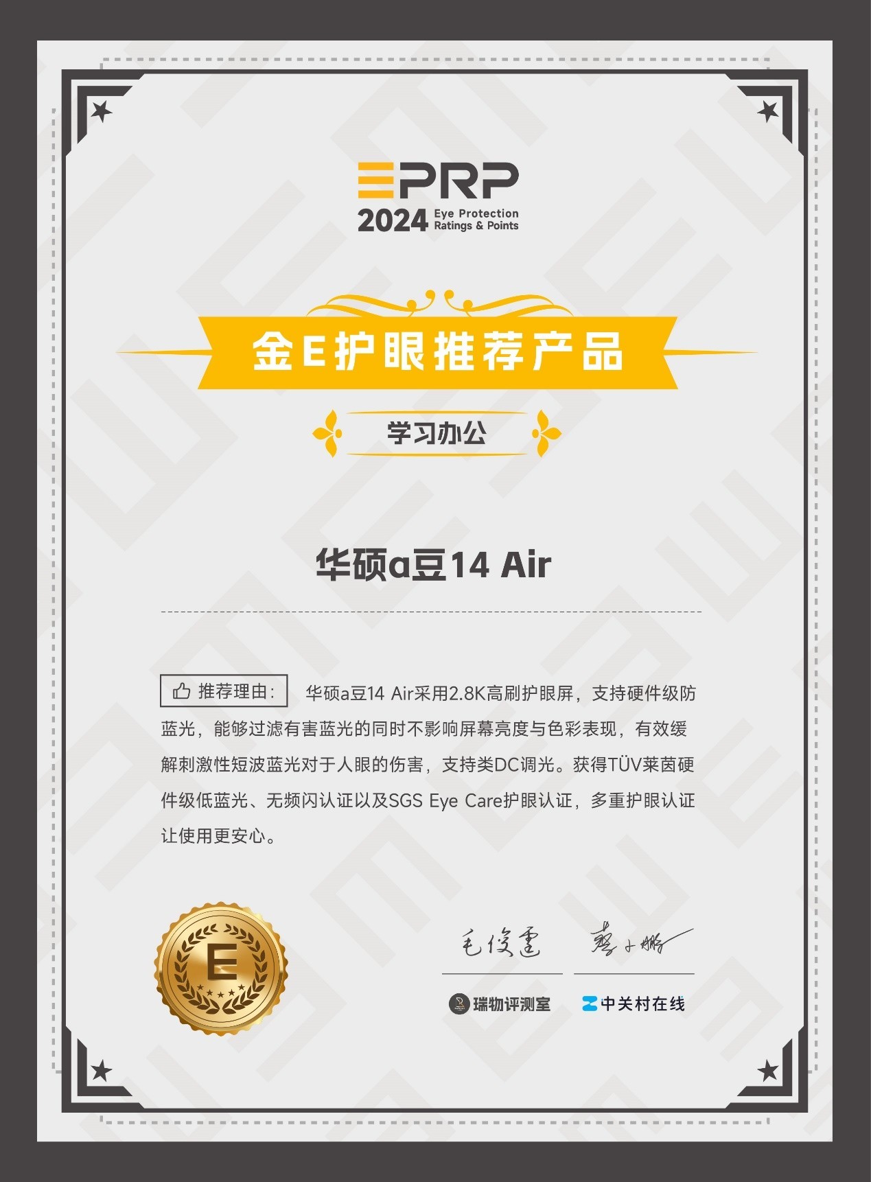 2024金E护眼-学习办公护眼推荐产品:华硕a豆14 Air