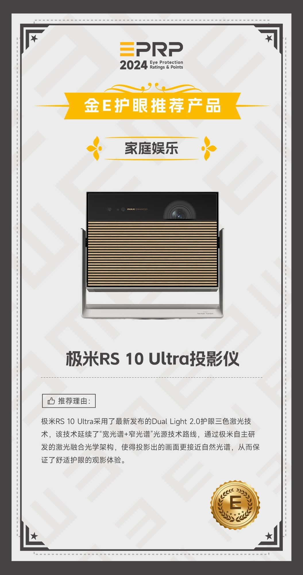 2024 金E护眼-家庭娱乐护眼推荐产品:极米RS 10 Ultra投影仪