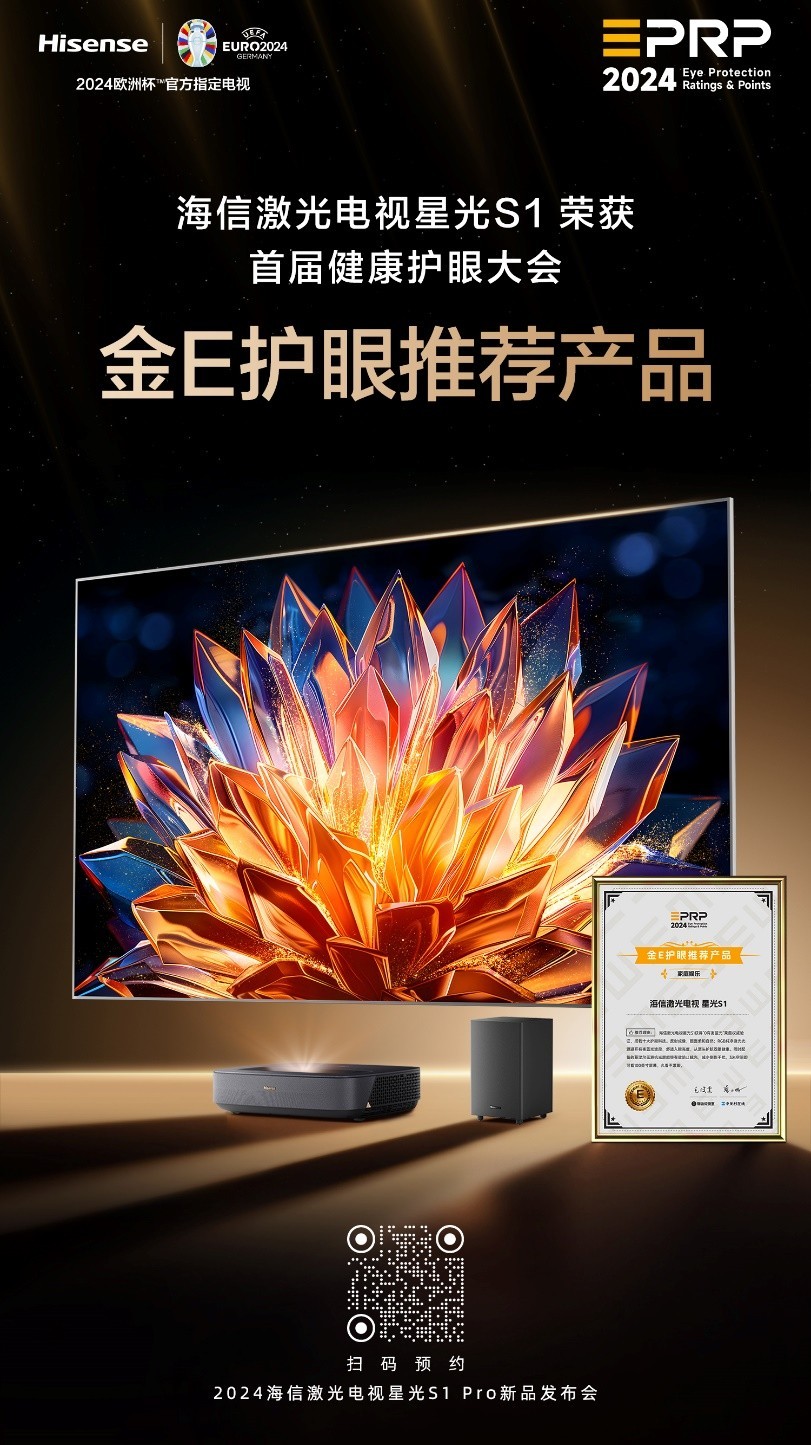 海信激光显示也支持行业出现更多关注显示设备健康护眼的声音,这对于提升消费者体验至关重要,同时也希望推动行业进一步形成相关标准。此外,6月12日,海信将举办“最护眼电视全面进化”——2024海信激光电视星光S1Pro新品发布会,为消费者带来护眼实力和音画体验全方位升级的激光电视。