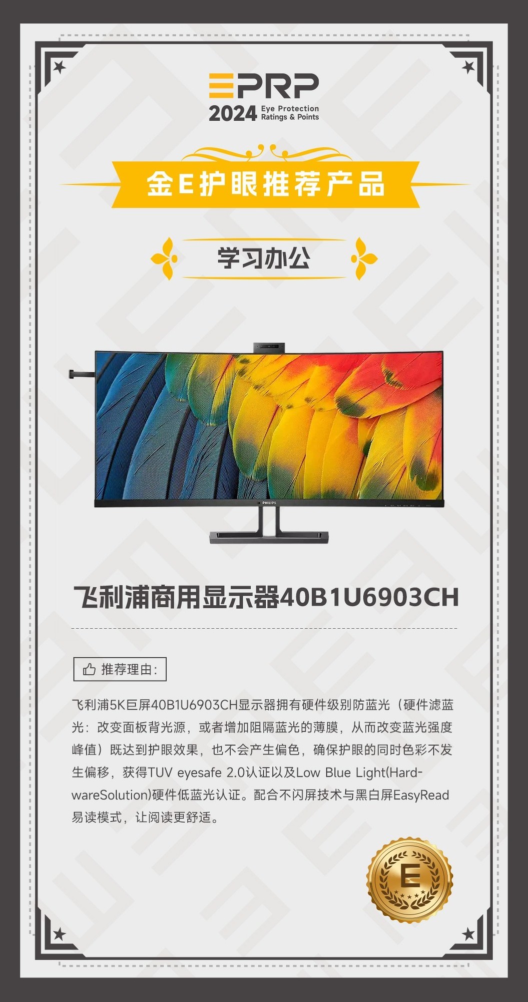 2024 金E护眼-学习办公护眼推荐产品:飞利浦商用显示器40B1U6903CH