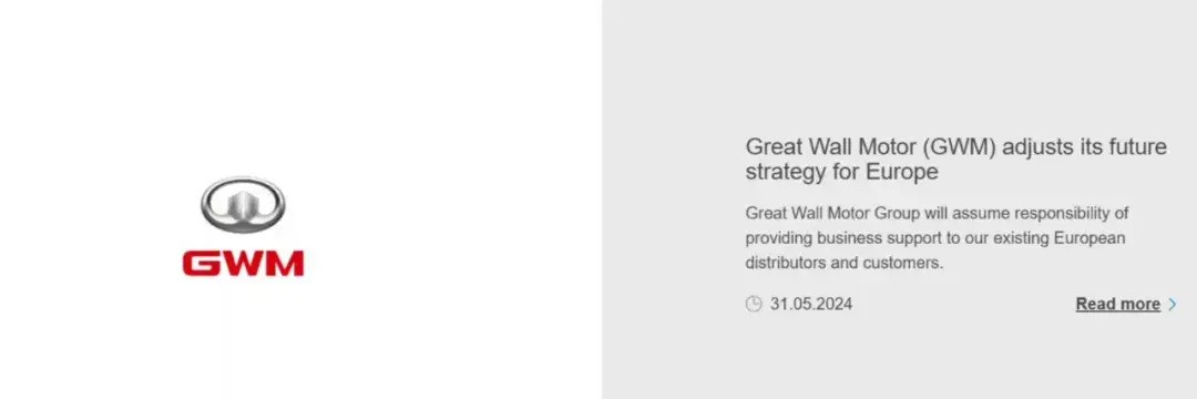 长城汽车表示,在当前日益严峻的欧洲电动汽车市场形势下,并考虑到未来可能存在诸多不确定性因素,该公司集团将相应调整未来的欧洲战略。近日,长城汽车官方宣布将于2024年8月关闭位于德国慕尼黑的欧洲总部。官方表示,长城汽车集团非常重视现有经销商合作伙伴的业务自主权,并将继续与目前的合作伙伴共同在欧洲进行销售和服务运营。