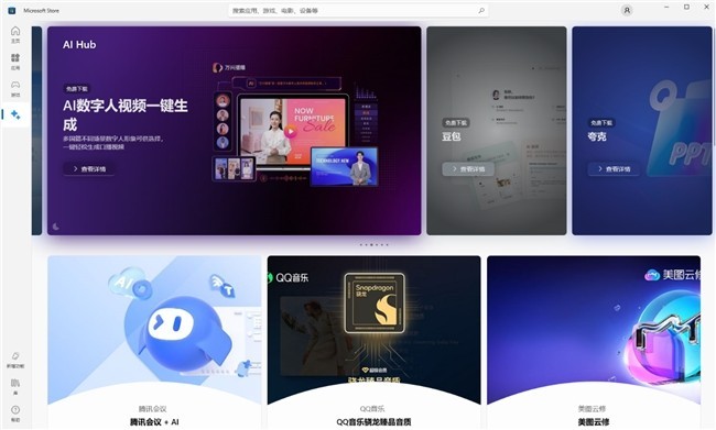 近日,微软Microsoft Store正式上线AI应用专区,AIGC软件A股上市公司万兴科技(300624.SZ)旗下万兴播爆、万兴PDF等明星产品首批入驻,其中万兴播爆获banner位推荐,用户可在微软商店首页点击AI Hub模块,直接下载使用。一同入驻的还有字节跳动旗下豆包、阿里旗下夸克浏览器、腾讯旗下QQ音乐、美图旗下美图云修等应用。