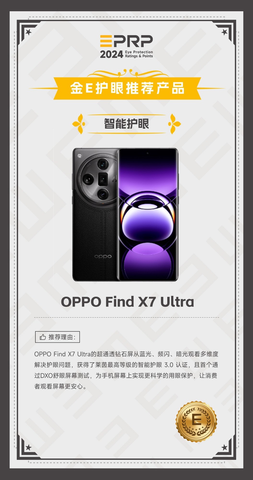 2024 金E护眼-学习办公护眼推荐产品:OPPO Find X7 Ultra