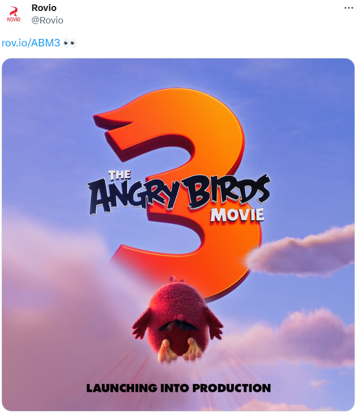 Rovio、世嘉和Prime Focus Studios宣布,《愤怒的小鸟3》即将开拍。影片将与动画公司DNEG Animation合作制作。此外,Jason Sudeikis将继续为Red配音,而Josh Gad则继续为Chuck配音。