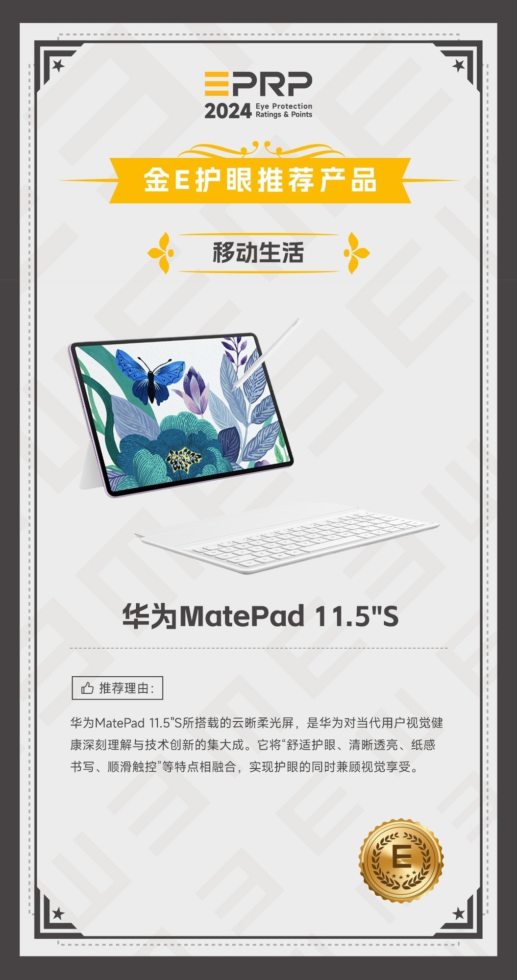 2024 金E护眼-移动生活护眼推荐产品:华为MatePad 11.5"S