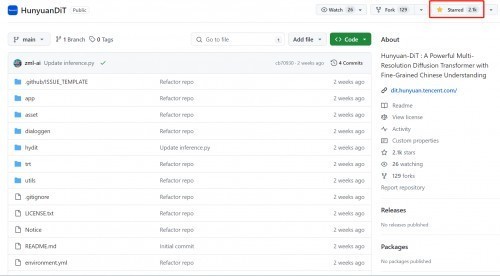 腾讯混元DiT模型开源之后,受到了众多社区开发者的认可。开源不到一个月,项目Github Star数就超过2100,位于开源社区热门DiT模型前列。