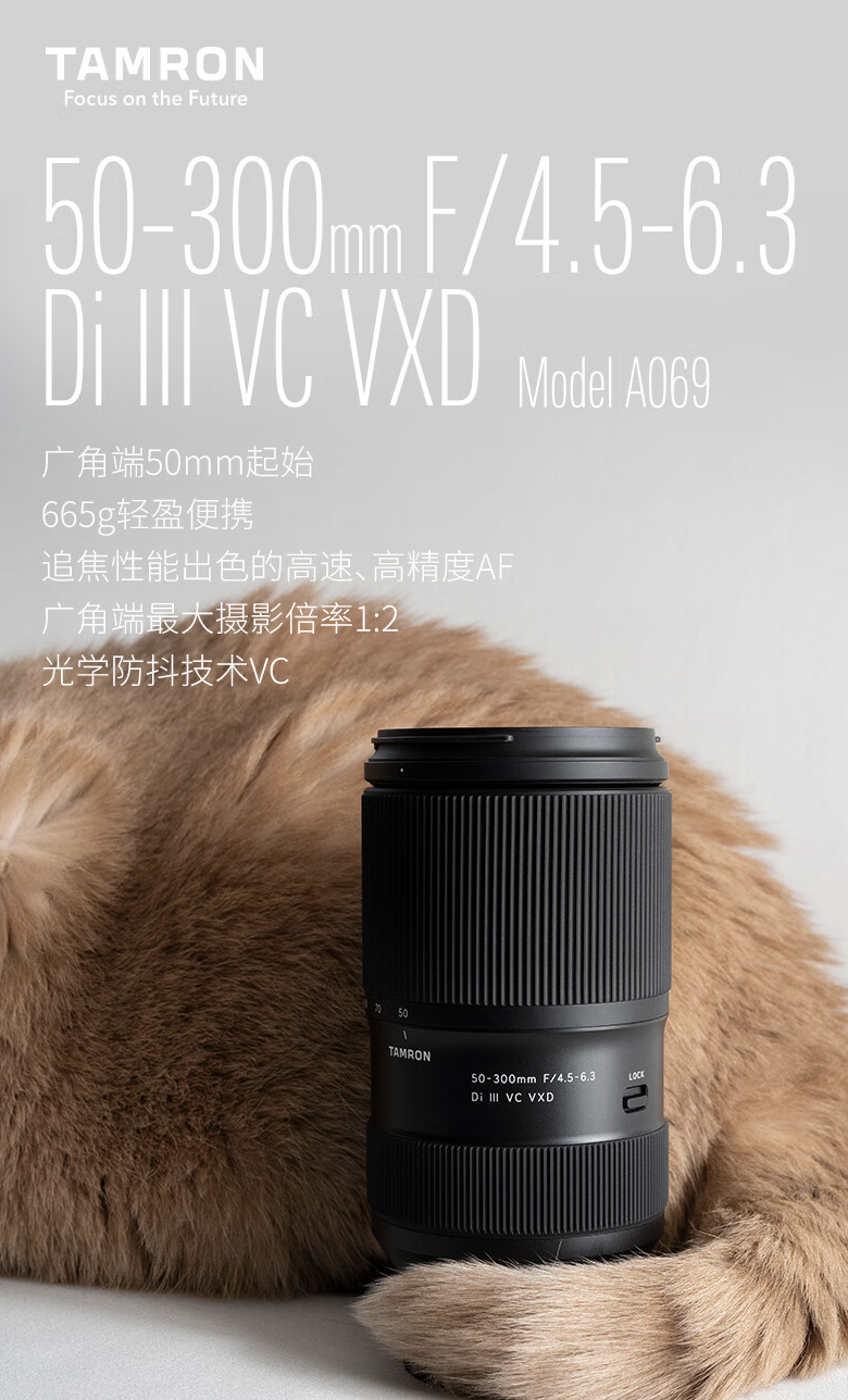 近日,腾龙公司发布了其最新款的索尼E卡口长焦变焦镜头——“50-300mm F / 4.5-6.3 Di III VC VXD”,预计将于2019年6月27日正式上市。这款镜头已在京东平台开启全款预订,售价为5890元人民币。