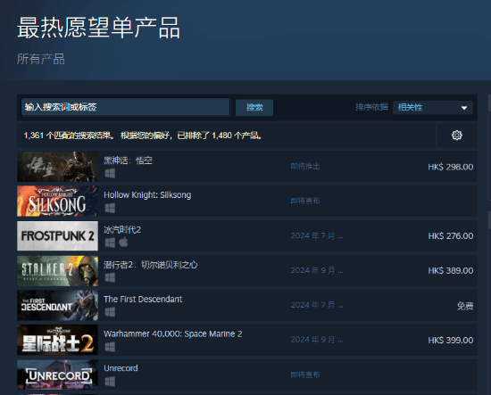 《黑神话:悟空》于今日在Steam平台开启预购,迅速成为热销商品,并超越了《空洞骑士:丝之歌》,荣登Setam愿望单排行榜首位。这一现象无疑表明了全球玩家们对这款游戏的极度期待,并为中国3A游戏在国际市场上的进一步发展奠定了基础。