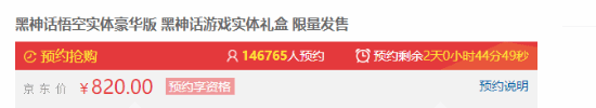 京东宣布成为《黑神话:悟空》的全球官方合作伙伴,并正式成为该游戏实体收藏版和实体豪华版的预约平台。根据最新数据显示,截至发稿时,实体豪华版(售价820元)已获得14万6765人的预约;而实体收藏版(售价1998元)已获得23万2734人的预约。