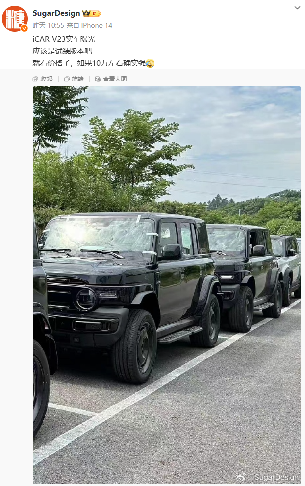 近日,奇瑞iCAR V23新车黑色款实车照片首次曝光。这款新车预计将于今年年底上市。从外观来看,iCAR V23采用硬朗的方盒子设计,车身线条锋利,采用圆形灯体设计。