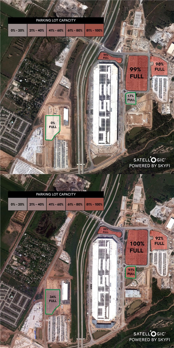 通过对比2023年10月和2024年3月的得克萨斯超级工厂卫星图像,可以明显看出该工厂周围的停车场已经从部分或几乎满员的状态变成了完全堆满。据了解,在2024年第一季度,特斯拉共生产了433371辆汽车,但实际销量仅为386810辆。这意味着有46561辆汽车未能找到买家,从而暴露出了严重的库存积压问题。