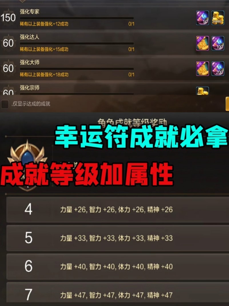 成就系统有等级和属性加成,鼓励玩家多刷。龙人之塔领主地图建议在疲劳值剩下一点时挑战全图,其中有精英怪可以达成成就。重视成就的重要性,并查看列表来确保不遗漏任何任务,每天满额完成可获得3000泰拉。