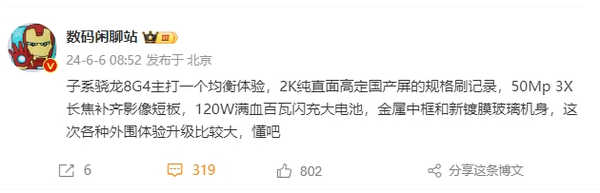 日前,知名数码博主@数码闲聊站发布了一则消息,透露了Redmi K80系列最新款机型的更多配置细节。根据博主透露的信息,新款Redmi K80 Pro将采用高通骁龙8 Gen4移动平台,并配备50MP 3X长焦镜头,在影像方面进行了补足。