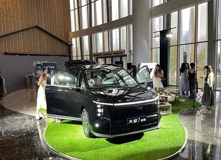 备受关注的大家7超混版终于正式上市了!新车共推出了8款配置车型,售价区间从19.99万到24.99万。外观方面,大家7超混版采用了平直几何切割设计,搭配环状灯带和T字形泪眼式灯组,给人带来强烈棱角感。车身侧面采用双色拼接布局,非常年轻前卫。车尾配备竖直灯组和贯穿式灯带,在辨识度上表现出色。
