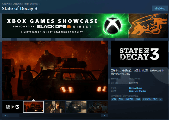 在今天的Xbox展示会上,一款名为《腐烂国度3》的新游戏发布了预告片。同时,这款游戏也在Steam平台上架,并公开了首批游戏截图。