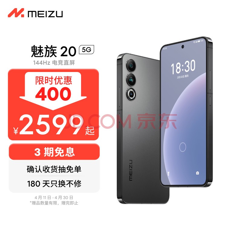 魅族 20 第二代骁龙8旗舰芯片 144Hz电竞直屏 支持67W快充 超薄机身设计 5G手机 先锋灰 8+256GB(白色专属)