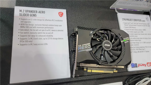 此外,在安装模块上还配备有独立散热片,并通过正面风扇进行直吹降温,有效控制SSD温度。目前微星尚未公布这款扩展卡的上市时间和售价。