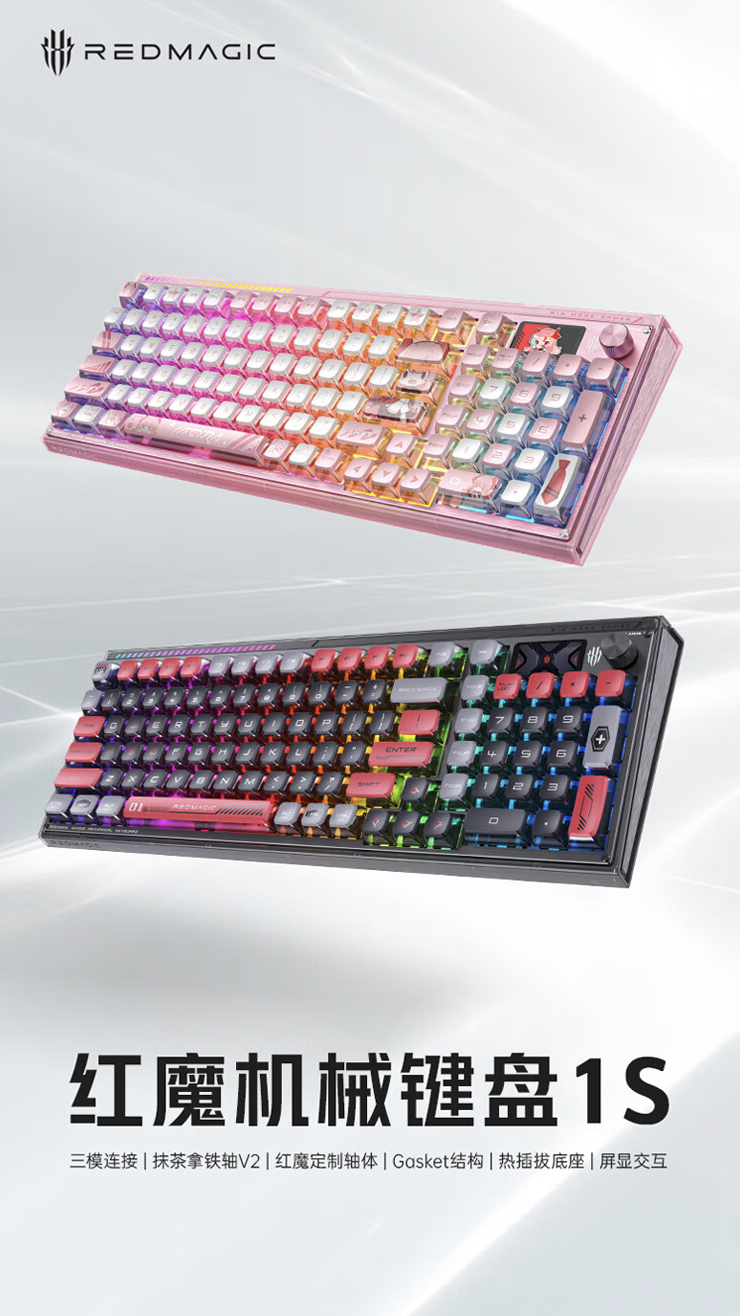 努比亚在京东上架了一款红魔机械键盘1S,这款键盘采用“Gasket结构+屏显”的设计,可选配“氘锋透明”版和“MORA定制版”,两者只有外观配色的区别。售价均为649元,将于6月18日现货开售。