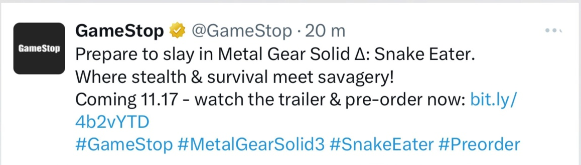 根据GameStop发布的最新消息,科乐美公司计划于2024年11月17日推出《潜龙谍影Δ:食蛇者》这款游戏。该游戏是《合金装备3:食蛇者》的重制版,由小岛秀夫主导开发的该游戏于2004年在PS2平台上首次亮相。