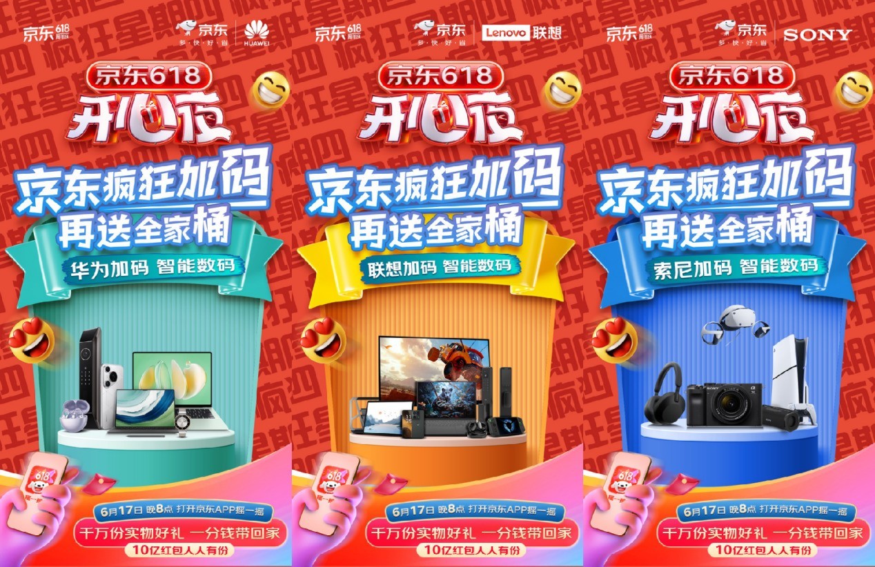 6月17日19:30,由湖南卫视、芒果TV、京东联合举办的《京东618开心夜》,将在湖南卫视、芒果TV、京东APP同步直播,用户下载并打开京东APP摇一摇,就能抽取千万份实物好礼,一分钱带回家,更有10亿红包人人有份。其中,实物好礼就包括京东3C数码为消费者提供华为全家桶、Apple全系列产品(使用权)、索尼全家桶、联想全家桶的超级大奖,最高价值达3万,用户中奖后一分钱就能入手。