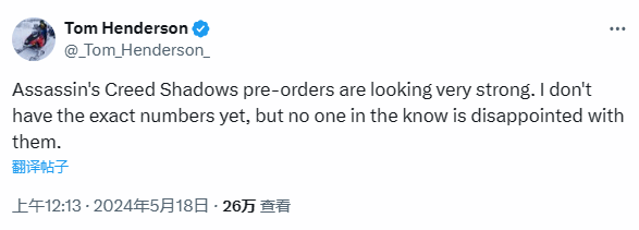 育碧日前发布了《刺客信条:影》的第一支预告片,宣布游戏将于11月15日发售,并已开始预购。据知名爆料人Tom Henderson透露,这款游戏的预购表现强劲。虽然他没有给出具体数字,但育碧内部对此反应积极。PC版标准售价为348元人民币,且预计6月份会公布首部实机试玩短片。