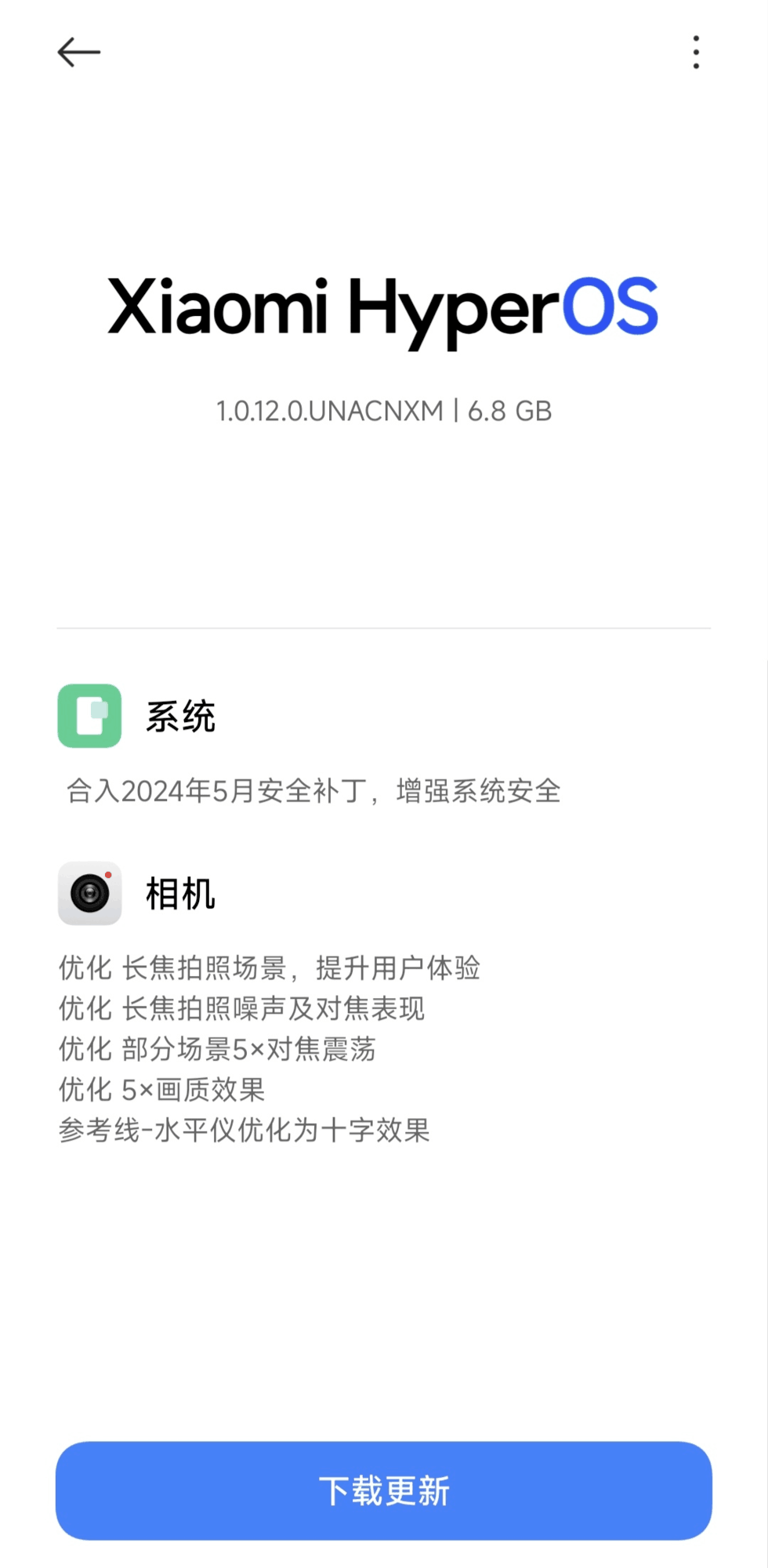 小米14 Ultra手机于2024年2月发布,搭载高通骁龙8 Gen3处理器,并支持双向卫星通讯。近日,该机进行了系统升级,版本号为1.0.12.0.UNACNXM的更新推送,安装包体积为6.8GB(增量包为246MB)。本次更新主要优化了长焦拍照场景,并提升了用户体验;同时,合入了2024年5月安全补丁,增强了系统的安全性。