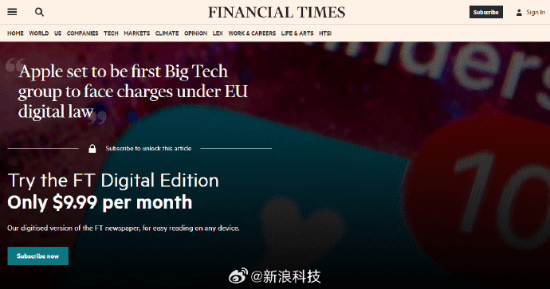 据英国金融时报报道,苹果将成为欧盟首批根据《数字市场法案》提起指控的大型科技公司之一。据悉,欧盟委员会认为苹果未能履行“允许应用程序开发商在其App Store之外的服务上进行收费”的义务,并计划在未来几周内发布相关公告。